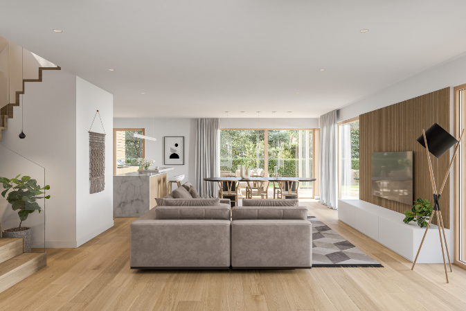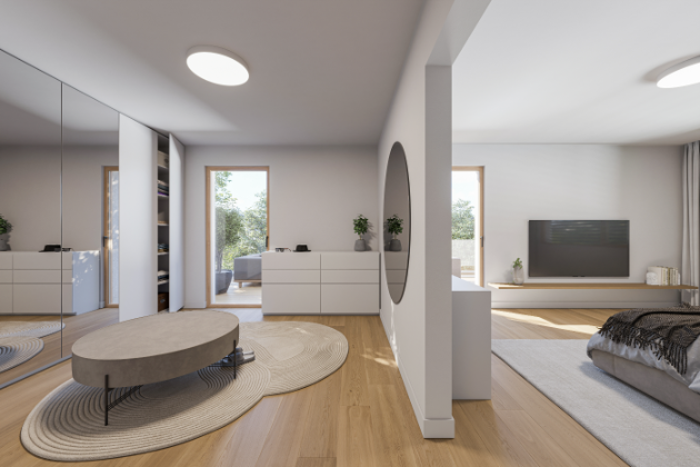 Zasebni del hiše navduši z dvema izjemno prostornima otroškima sobama ter ločeno spalnico za starše, ki vključuje tudi udobno walk-in garderobo in izhod na zunanjo teraso. Atractivo 159 združuje estetsko dovršenost, prostorsko učinkovitost in domačnost v enem. Na voljo je tudi s 146 in 180 m2 bivalne površine.